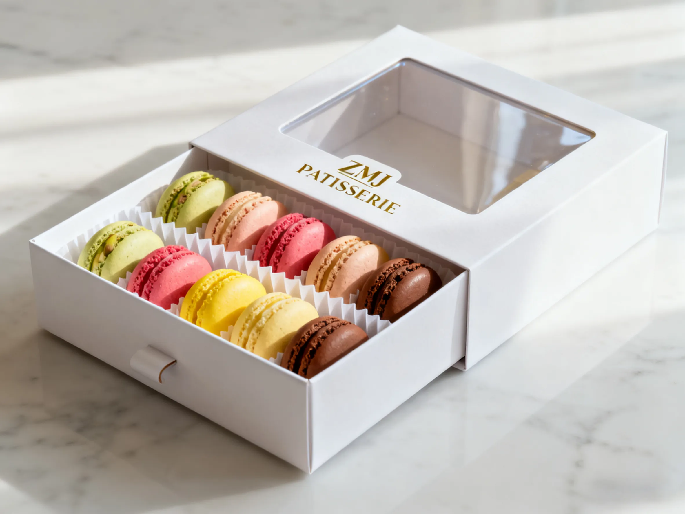 Όλοι γνωρίζουμε ότι τα μακαρόν είναι ευαίσθητα, λαμπερά και πολυτελή. Επομένως, η συσκευασία πρέπει να αντικατοπτρίζει αυτές τις ιδιότητες. Η Qingdao Zemeijia κατασκευάζει προσαρμοσμένα κουτιά δώρου macaron υψηλής ποιότητας. Αυτά τα κουτιά προστατεύουν τα μακαρόν και αναδεικνύουν τα έντονα χρώματα τους. Τα κουτιά μας διατηρούν τα μακαρόν σε άριστη κατάσταση στο δρόμο προς εσάς.